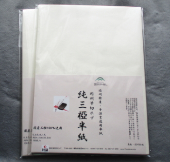 これは、三椏紙は特にきめが細かく筆運びが滑らかなので「いくら書いても筆が傷まない」という意味と「筆についた墨がかすれることなく長く書ける」という意味を掛け合わせた、しゃれた表現で、高品質の和紙です。