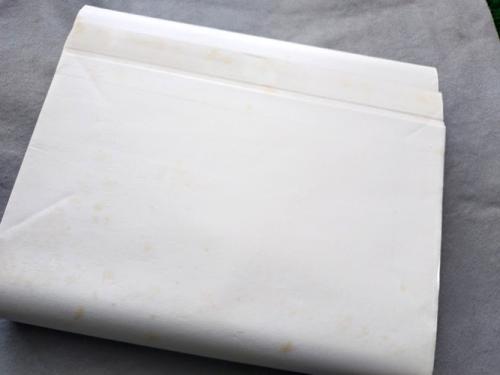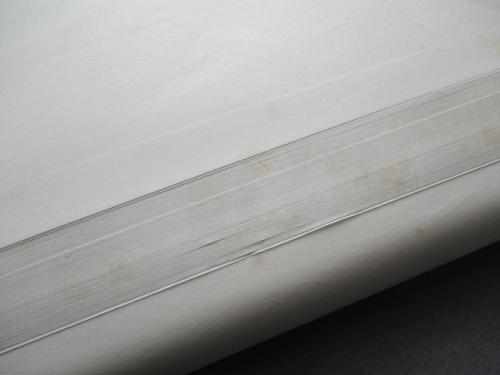 (用途)中字仮名・漢字用。 (寸法)約35cmx136cm。 (製造法)手漉。